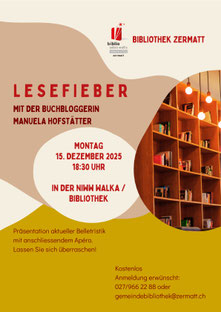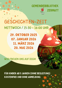 Anmeldung erwünscht, hier gehts zur Anmeldung: gemeindebibliothek@zermatt.ch